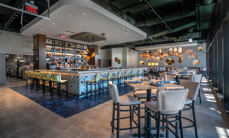 Dressler’s Chapter 6 is the sixth concept from Charlotte-based Rare Roots Hospitality and sits at the ground floor of The Line, a high-concept office tower with public green spaces and adjacency to the Rail Trail, a 3.5-mile public trail connecting Charlotte neighborhoods. The Chapter 6 menu serves-up small plates with Western Mediterranean influences and an emphasis on seasonal, locally sourced ingredients, paired with a vibrant cocktail menu. The 8,000-sq. ft. dining space captures a sleek, modern Mediterranean aesthetic with roll-up doors that open to a patio overlooking the Rail Trail. A state-of-the-art kitchen inclusive of a chef’s table puts guests at the front lines of all the live action. The over $3 million project completed in time for late summer dining in Charlotte’s South End.