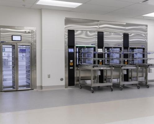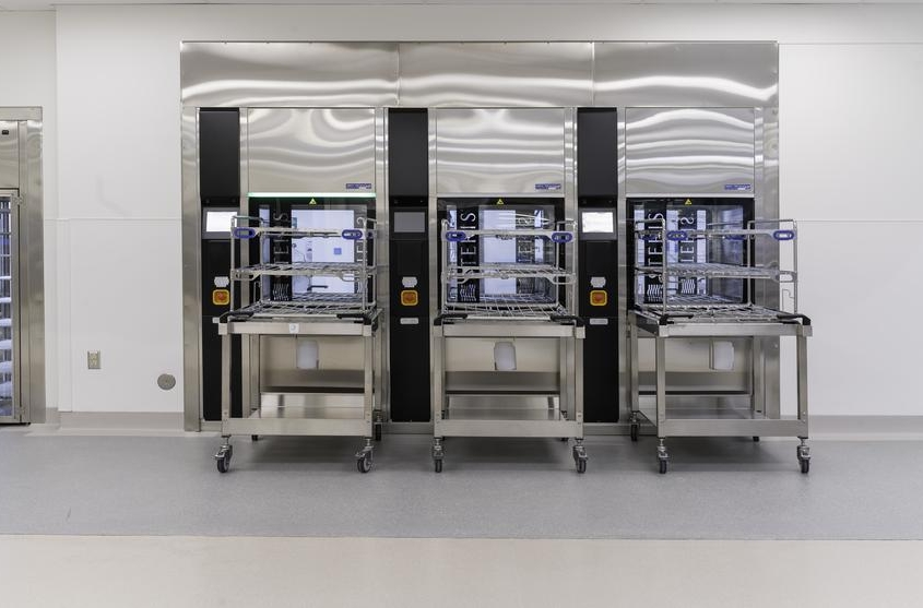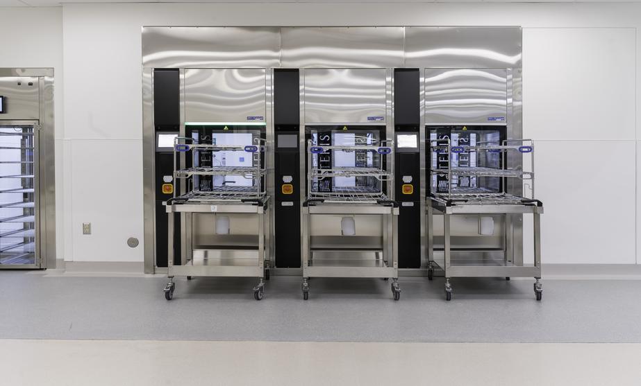 Swinerton provided general contracting services for renovations within the hospital’s active Sterile Processing Department (SPD). Full replacements were made to all sterile processing equipment and finishes in the decontamination portion of the SPD. A new water treatment system was also installed. The replacement of sterile processing equipment included minor partition modifications to improve staff workflow. Work took place within an operational acute care hospital adjacent to clean rooms. This required workers to suit up in protective dress to ensure these spaces were not decontaminated by debris or dust.