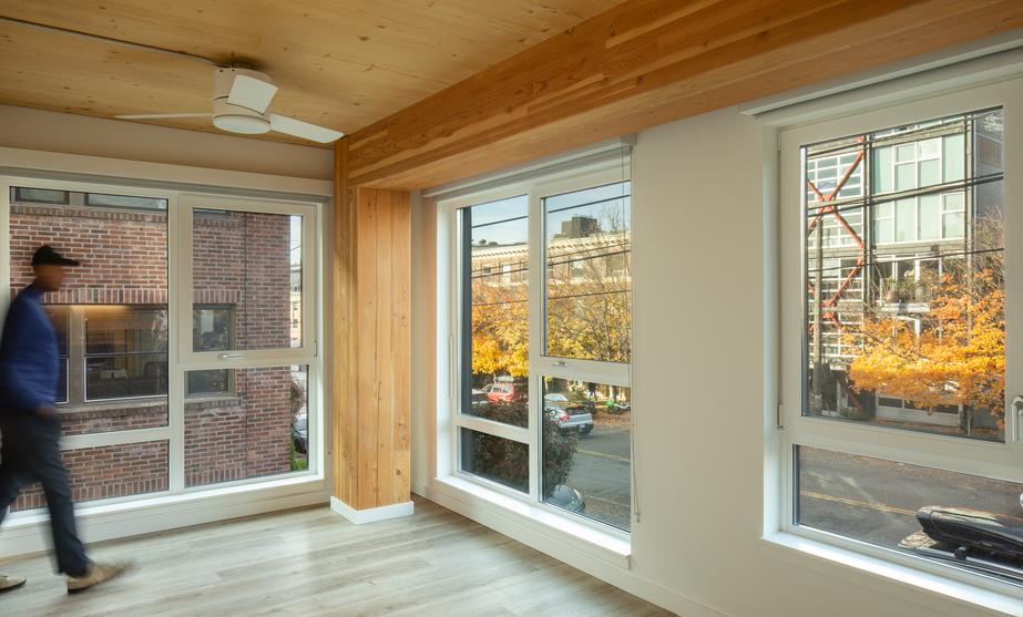 Both firms partnered with the structural engineer throughout the design phase to determine the optimal unit layout and structural grid to meet the project’s budget and program needs. Both firms also led meetings with the Seattle Department of Construction & Inspections to evaluate this new construction typology and propose solutions that addressed fire and life safety systems during both construction and upon occupancy.