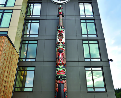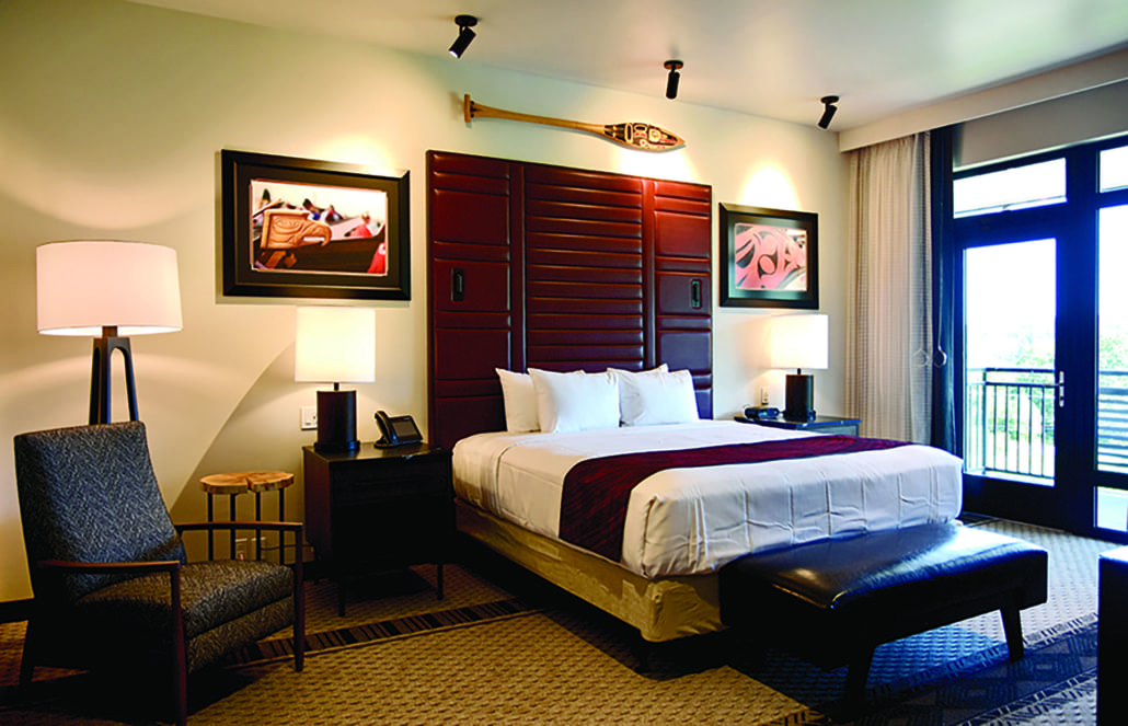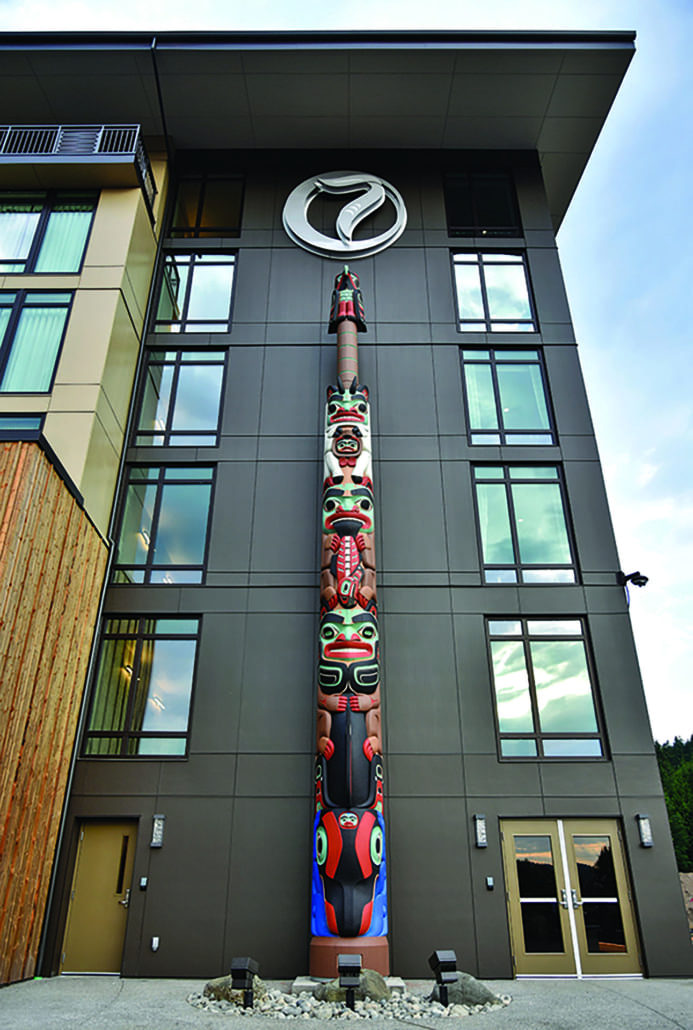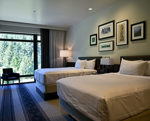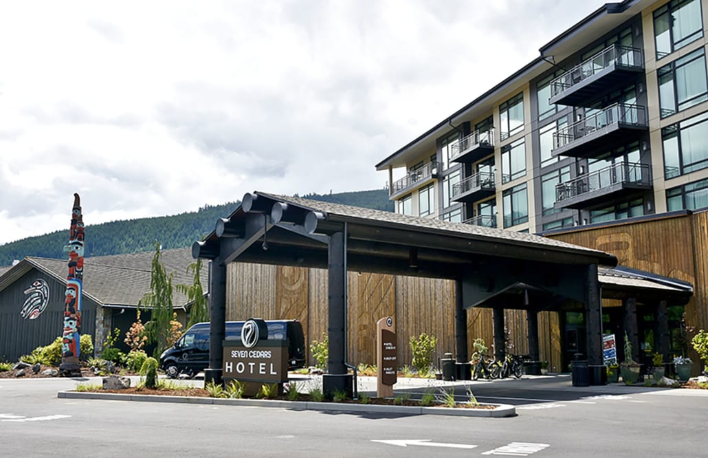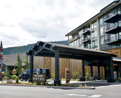 The 7 Cedars Hotel is a four-star, 21st century hotel with many guest amenities and 100-guest rooms. The project pulls inspiration from the Pacific Northwest and the Jamestown S’Klallam Tribe’s northwest region culture and history. With 21st century standards, the design concept uses elements pulled from nature. Each guest room floor had the goal of representing a different element, water, land, trees and sky. The lower/entry floor showcases the lobby, conference center, meeting rooms, banquet space, administrative space, and coffee bar/marketplace, while the upper four floors consist of 100 guest rooms. The guest rooms highlight high-quality craftsmanship to showcase the strength, timelessness, and harmony of the Tribe’s homeland region.