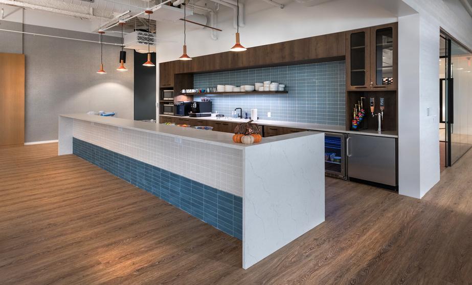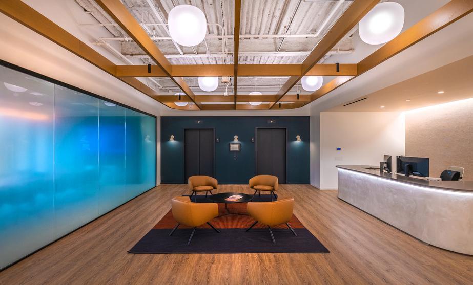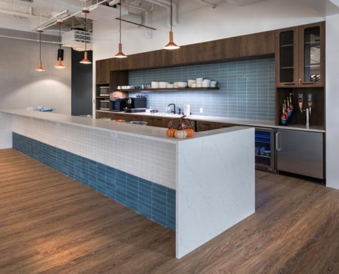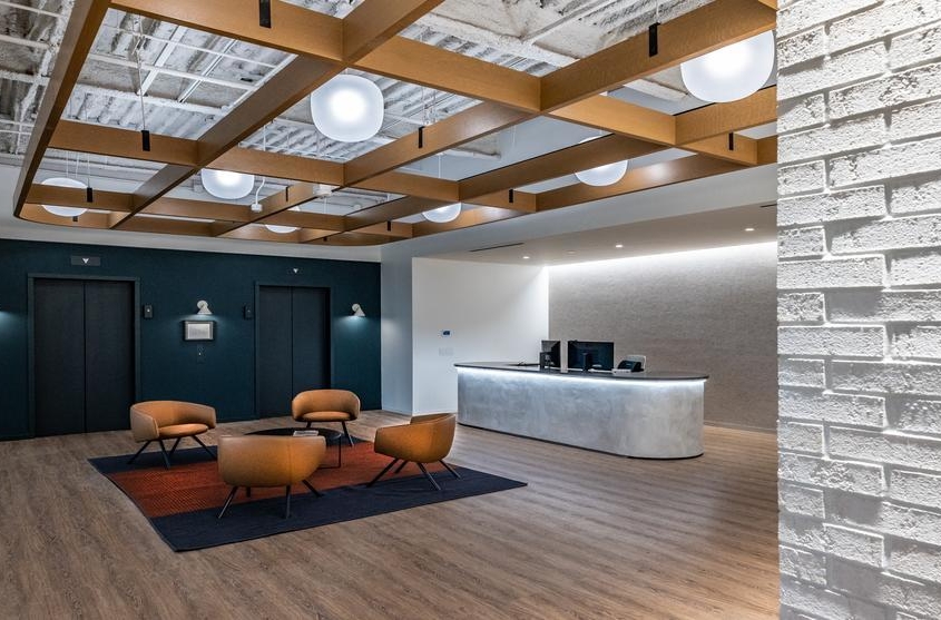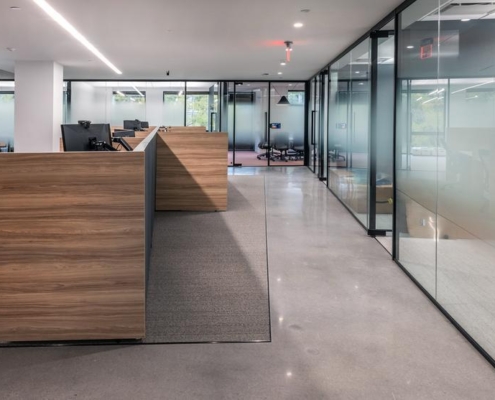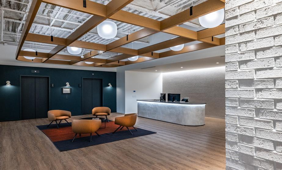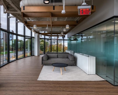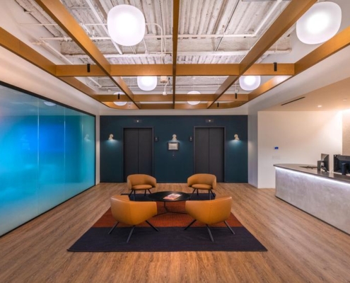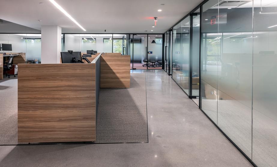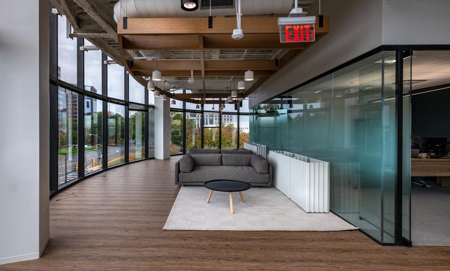 Swinerton provided general contracting services for the buildout of Big V Property’s new headquarters. Big V is a Charlotte-based commercial real estate company that is relocating to the South Park neighborhood. The 18,000-square foot space is located within a four-story, multi-tenant office building that Big V acquired last year and houses 45 employees. Plans call for open office space surrounded by 14 private offices, three huddle rooms, four hoteling stations, a phone room, a conference room, and a collaboration area. Employee amenities include a wellness room and a gaming/breakout area outfitted with a ping pong table and a television. Design features include a storefront glass panel system, wood architectural and suspension ceilings, wood veneer siding in the lobby area, luxury vinyl plank flooring, polished concrete, and a giant table for all-hands meetings.