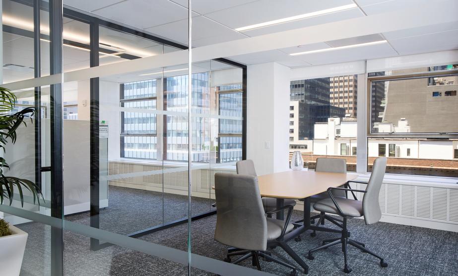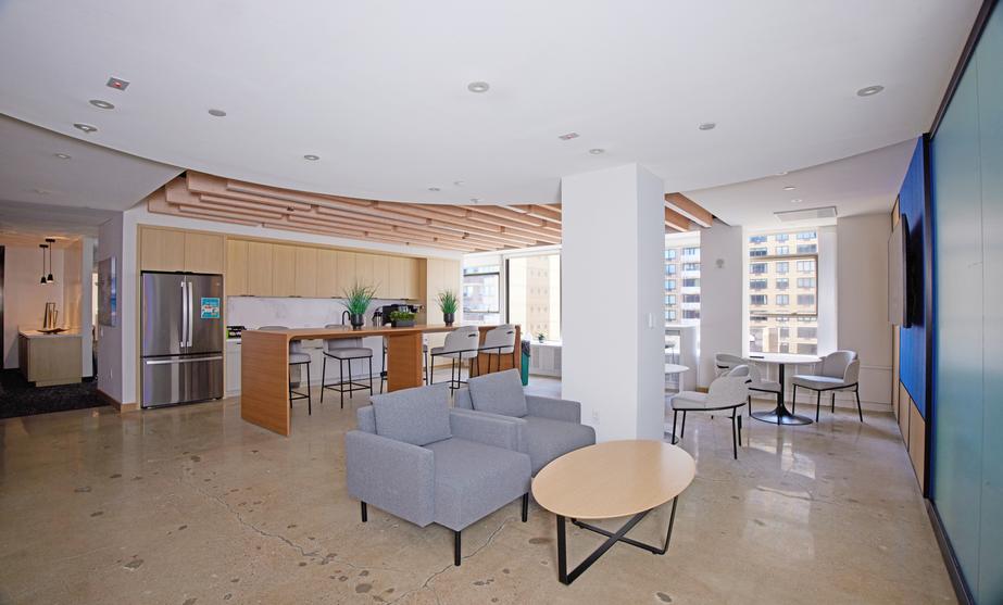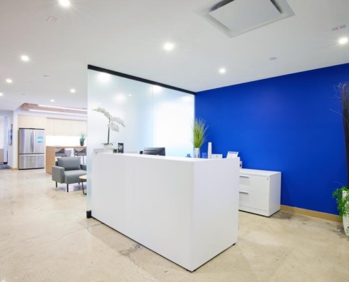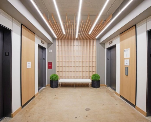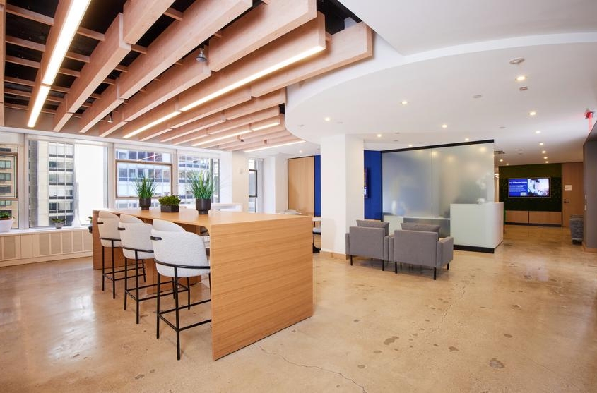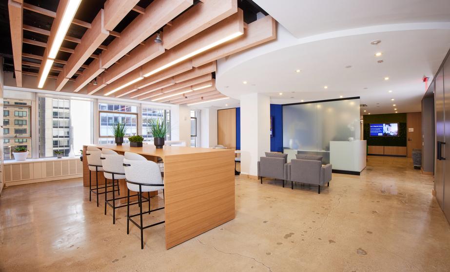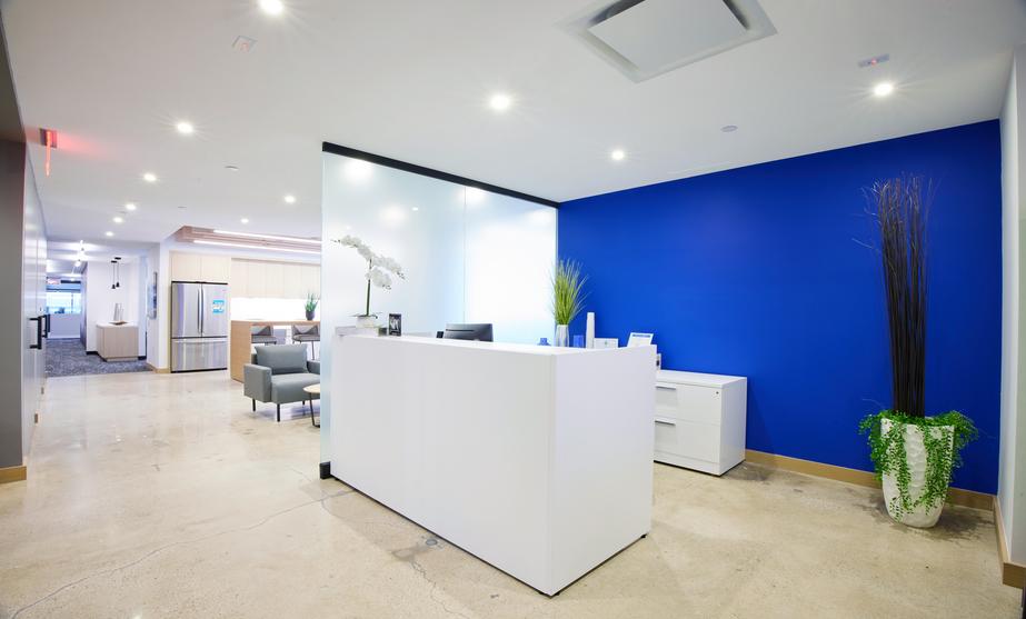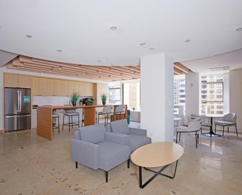 Swinerton provided general contracting services for the full interior fit out of a Class A office suite. Following the interior demolition of existing space, work included the buildout of a new reception area off the elevator lobby, perimeter offices, various conference rooms, a board room, a broker room, open work areas, a pantry, custom seating, and a phone room. The open work area features a custom “living wall” made of moss, along with a high-end custom slatted ceiling. New MEP and fire/life safety systems were installed.